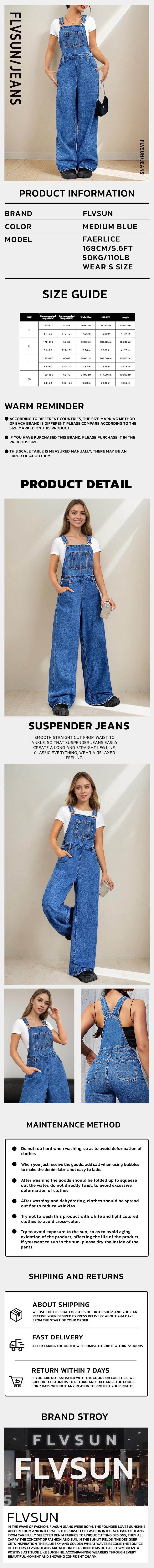 【Adjustable & Super Comfortable】 These denim overalls for women feature adjustable buckle straps for a customized fit, paired with soft, breathable cotton denim that keeps you comfortable all day
