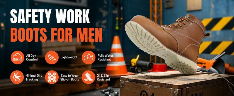 - Slip & Oil Resistance: The rubber sole with lug pattern grips wet concrete, oil spills, and uneven terrain. Reinforced rubber sole withstands abrasion, delivering longer durability than standard work boots.