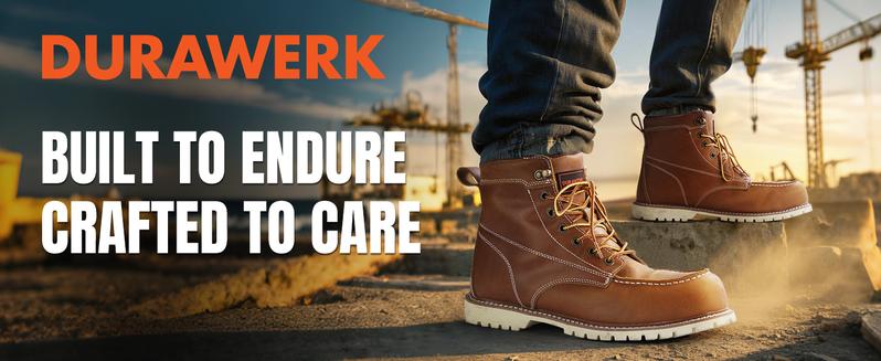 #Laborday DURAWERK Men'S Composite Toe Work Boots, Non-Slip Safety Shoes, Water-Resistant Leather Construction Boots