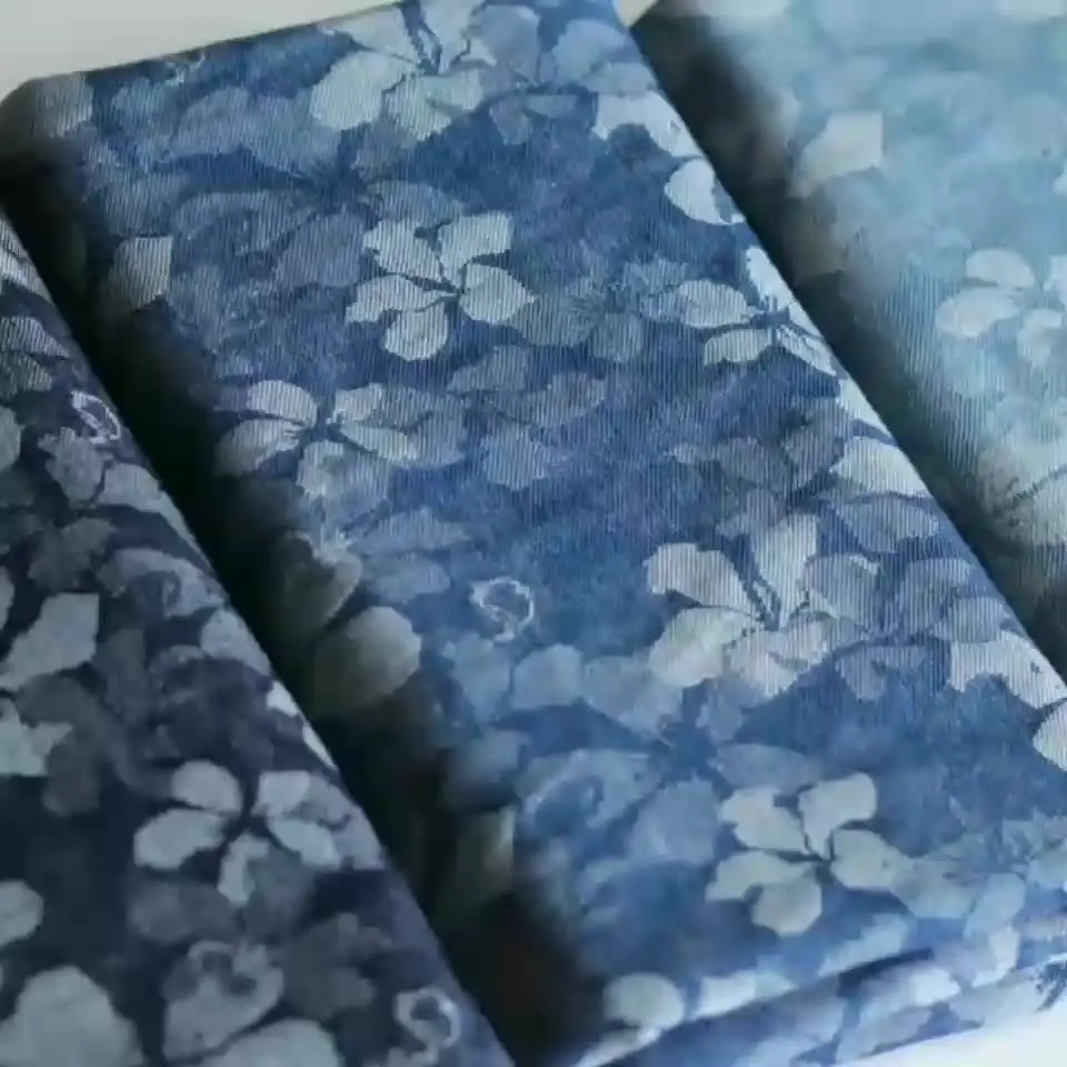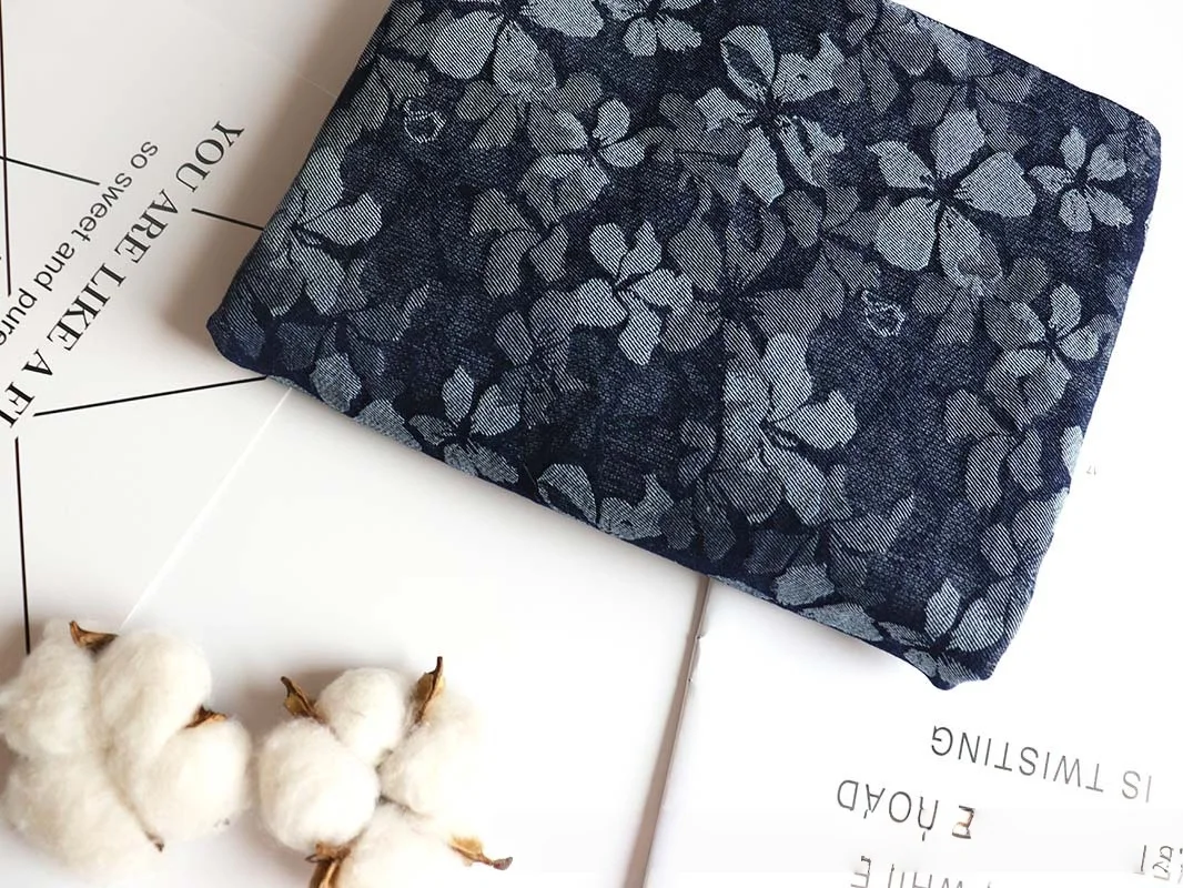 Manufacturer Price Stretchy Floral Denim Fabric Colorfast Jacquard Fabric for Pants Jacket Outwear Dress