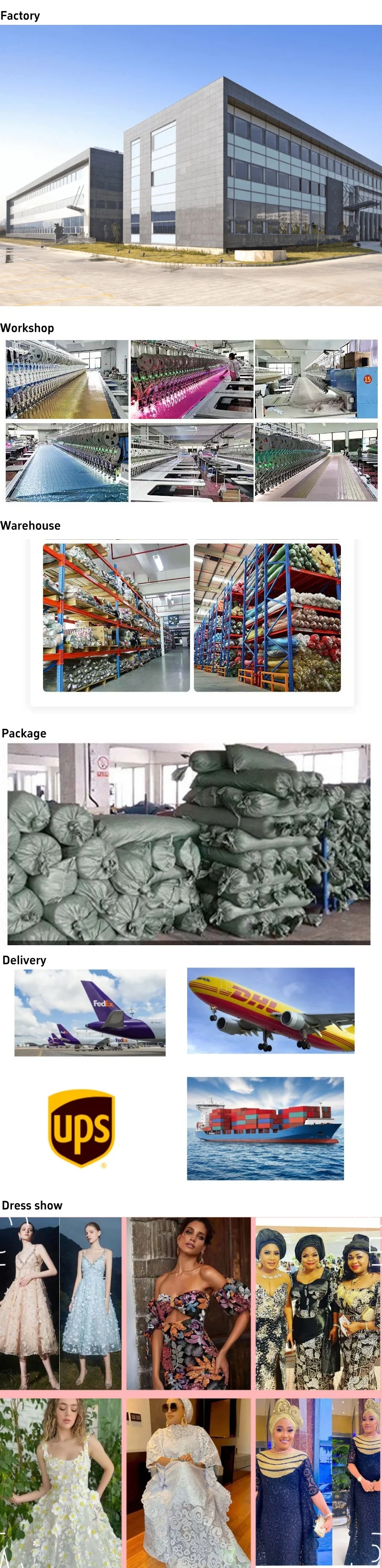 We specialize in 100% polyester fabric,embroidery fabric,lace fabric,sequin fabric and home textile products etc. Custom material compositions are available upon request.