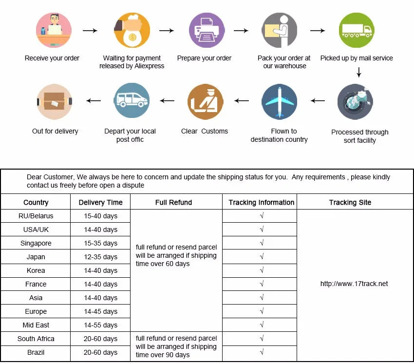 We provide with all kinds of shipping method,like AliExpress Standard Shipping, ePacket,China Post Air,DHL,Postnl,FedEx,EMS. If you want to specify the shipping method,Please contact us and we are happy to help you.