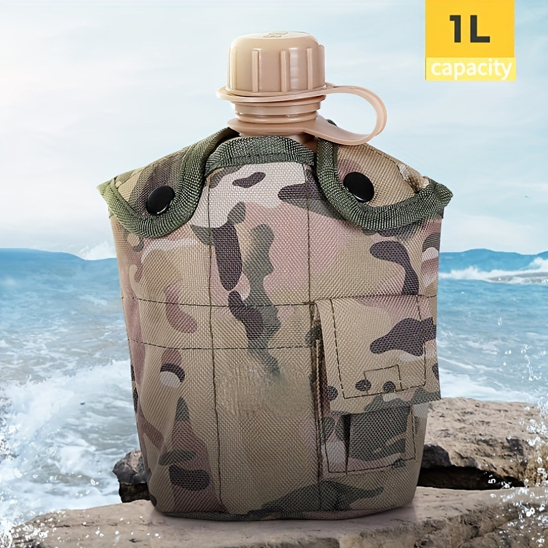 Multi-functional Camouflage Tactical Kettle with Thermal Insulation - Perfect for Camping, Hiking, and Travel - 304 Stainless Steel Liner and Oxford Cloth