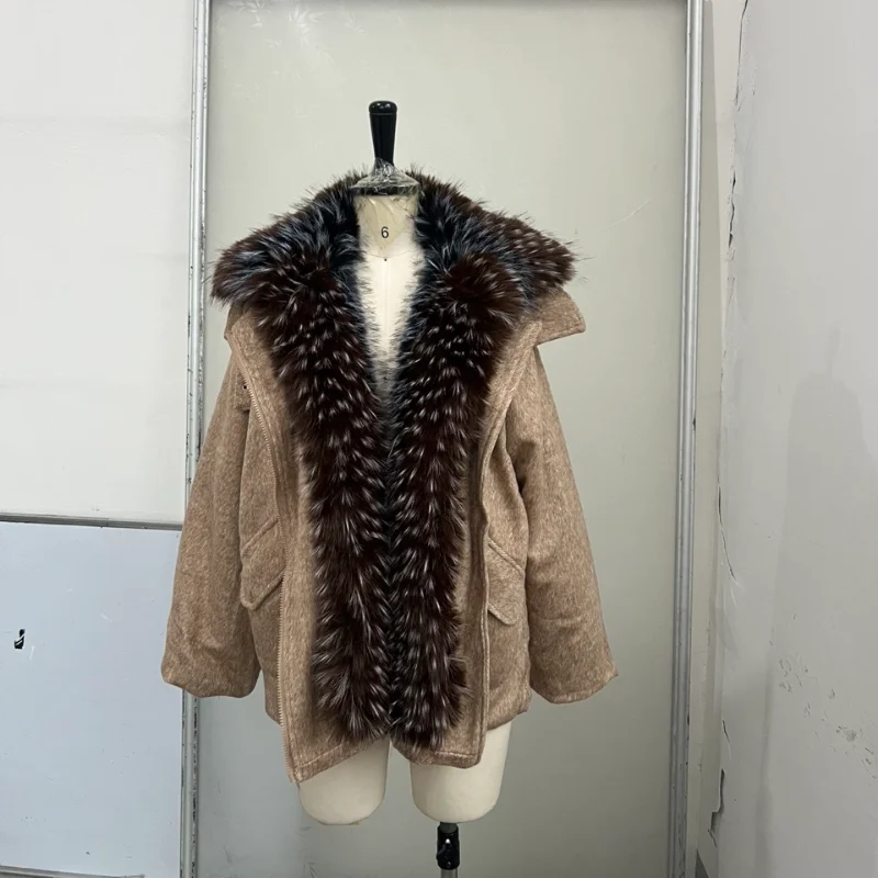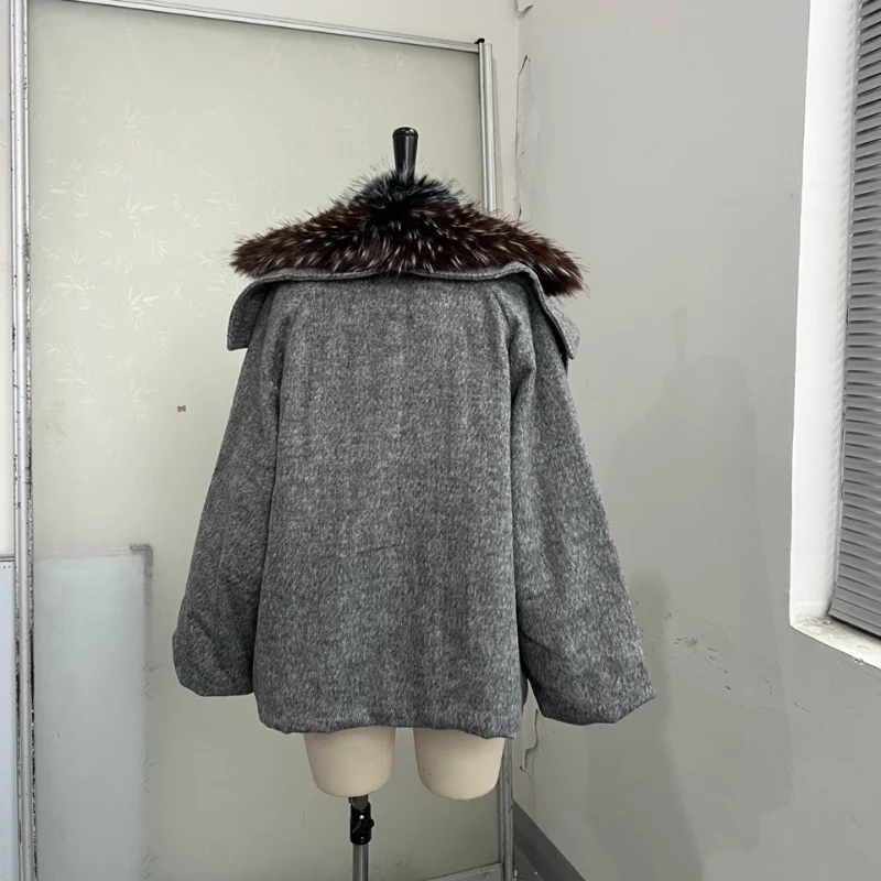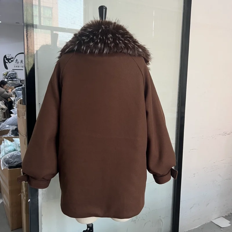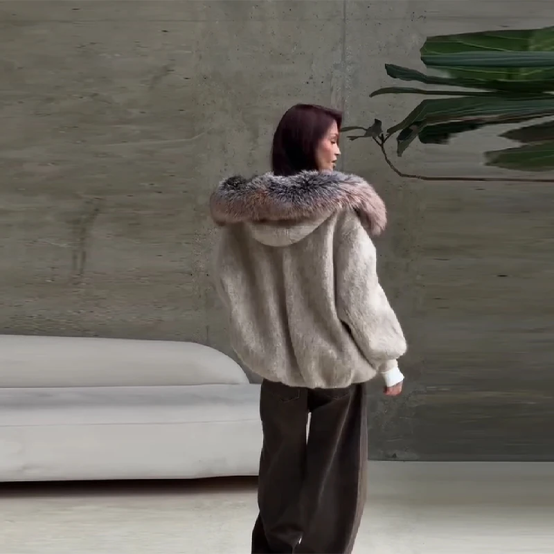 Oversized Winter Women's Coat Wide Faux Fur Collar Hooded Jackets Loose Single Breasted Outwears 2025 New Trendy Warm Lady Coats