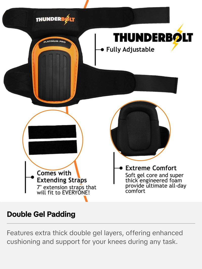 Upgrade your knee pads with the THUNDERBOLT PLATINUM PRO DOUBLE GEL NEW YEAR 2020 IMPROVED VERSION! This product is designed to provide superior protection and comfort for your knees, making it an essential addition to your toolkit.