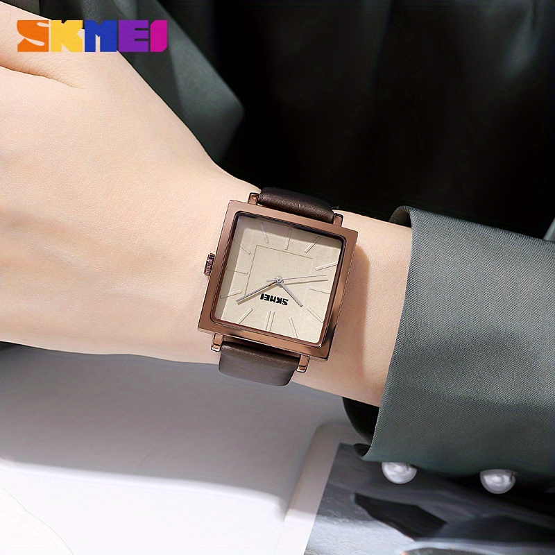 Casual Square Pointer Quartz Watch Elegant Waterproof Analog Dress Wristwatch For Women Students