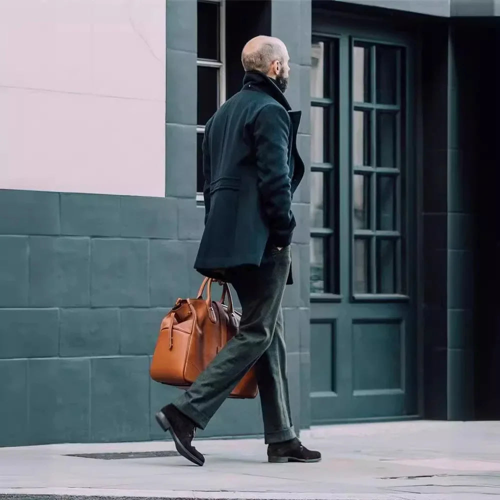 Men's British Woolen Overcoat for Autumn and Winter 2024, European and American Casual Lapel Single-breasted Solid Color Coat
