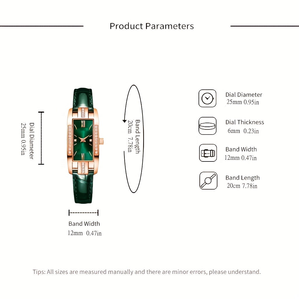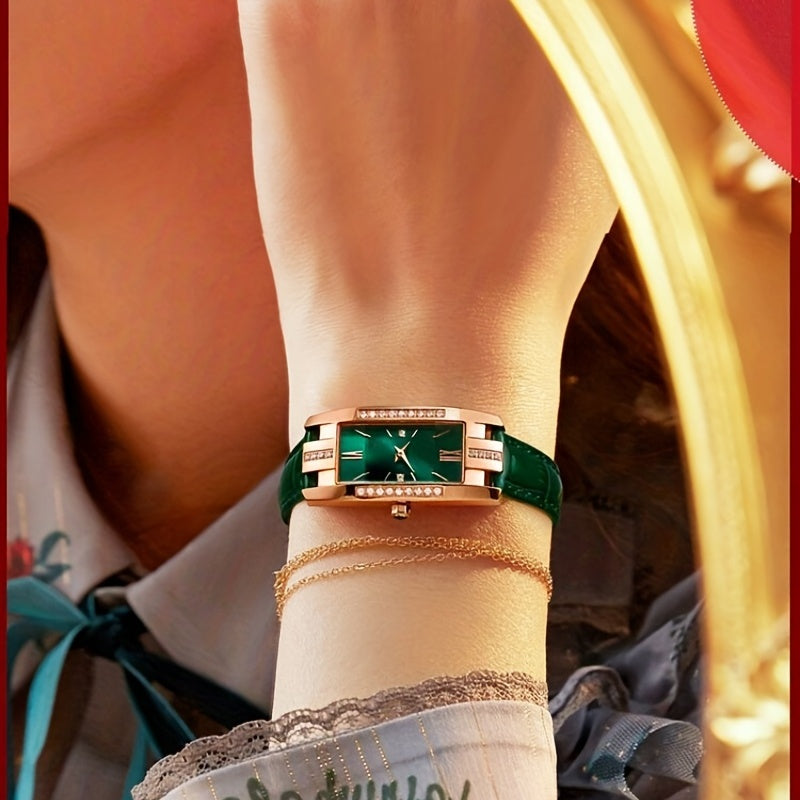 Rhinestone Decor Quartz Watch Elegant Rectangle Pointer Analog Wristwatch With PU Leather Strap