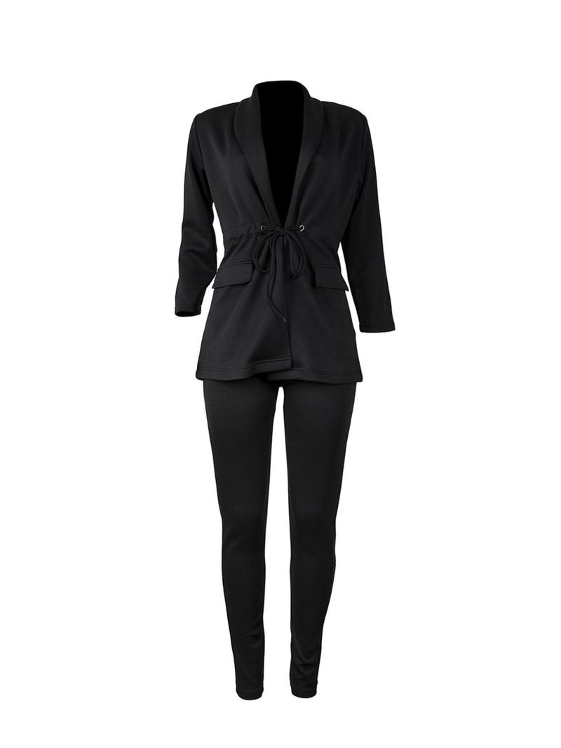Women'S Solid Two-Piece Set, 2 Counts Tie Front Collared Outerwear & Pants Set, Elegant Fashion Casual Two-Piece Outfits for Work Office Business, Ladies Spring & Fall Clothes