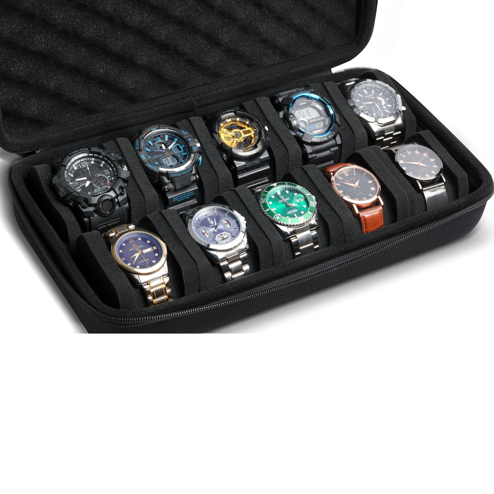 10 Slots Hard Shell Watch Storage Box, Carry Case, Display Organizer, Watch Box Holder Display Cabinet, Ideal for Gifts