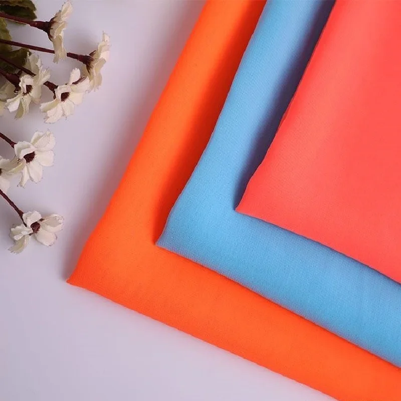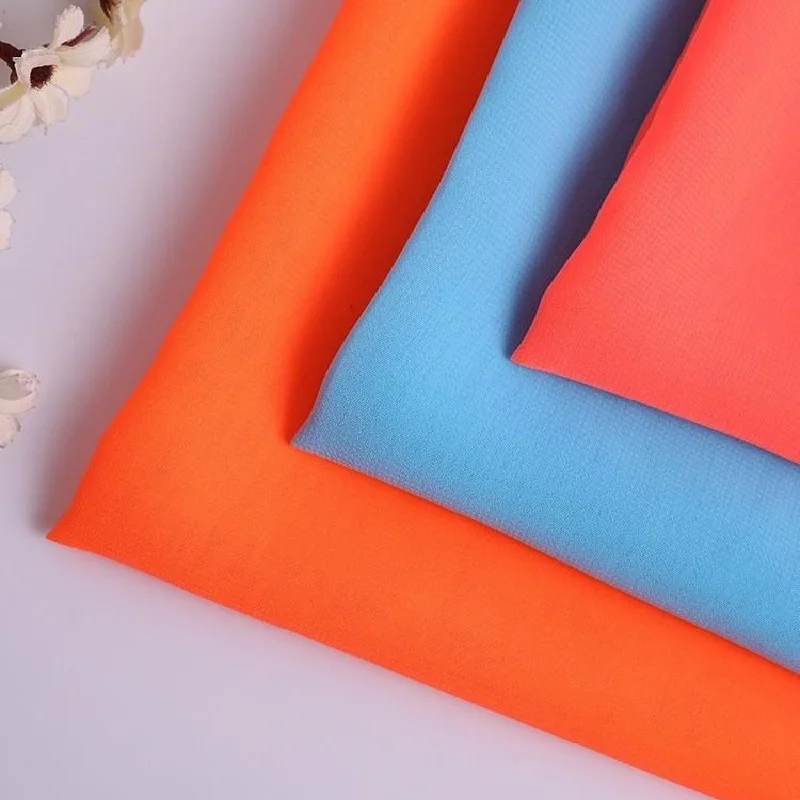 100D Polyester Solid Color Chiffon Georgette Fabric Quick-Dry Luxury Embroidery Breathable Dense 85gsm for Skirts Sleepwear