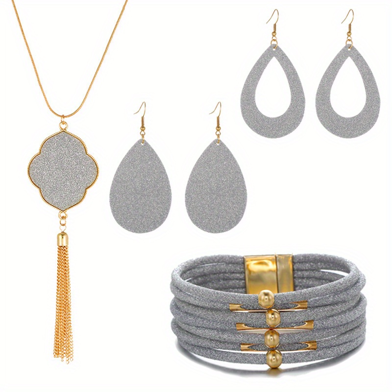 2 Pairs Of Earrings + Necklace + Bracelet Fashion Jewelry Set Multi Colors To Choose Multi Layer Bracelet Match Daily Outfits