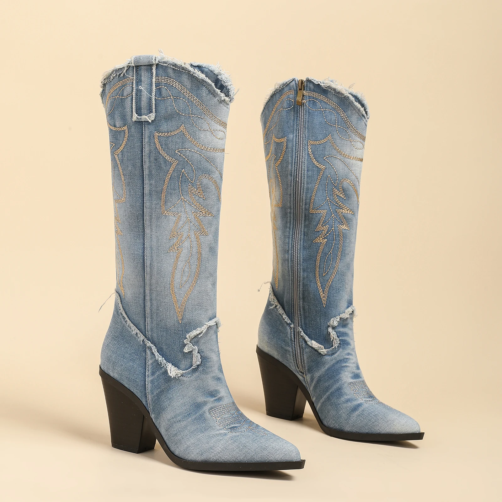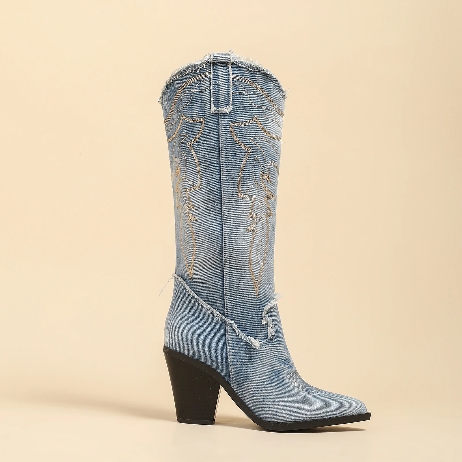 柔软鞋垫/跟高7.8CM/牛仔靴