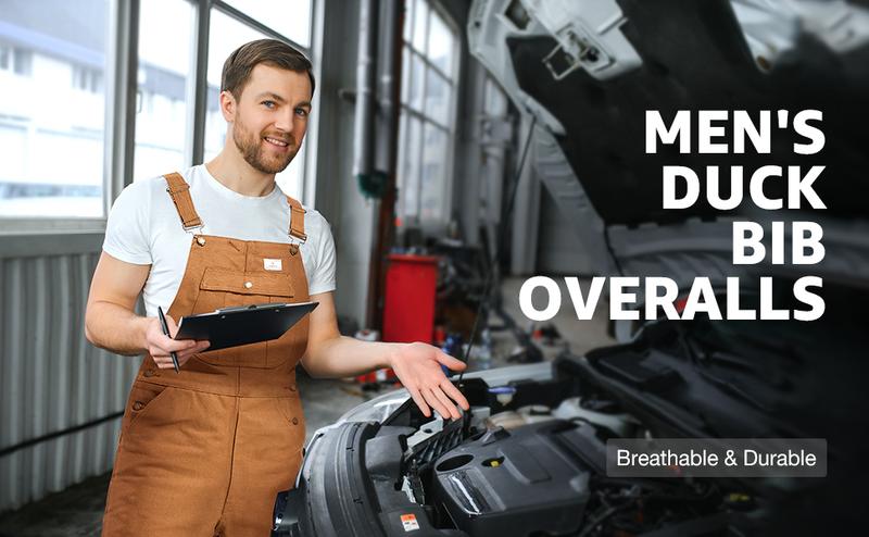 HISEA Men'S Duck Bib Overalls - Relaxed Fit Workwear with Adjustable Straps & Tool Pockets for Farming, Construction & Industrial Work Beige Brown Menswear