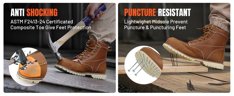 - Impact & Electrical Protection: Designed with ASTM F2413-24 certified composite toe cap, the boots resist heavy impacts while blocking electrical hazards up to 18kV. Perfect for construction sites, airport security checks, and electrical work—zero metal components ensure hassle-free clearance.