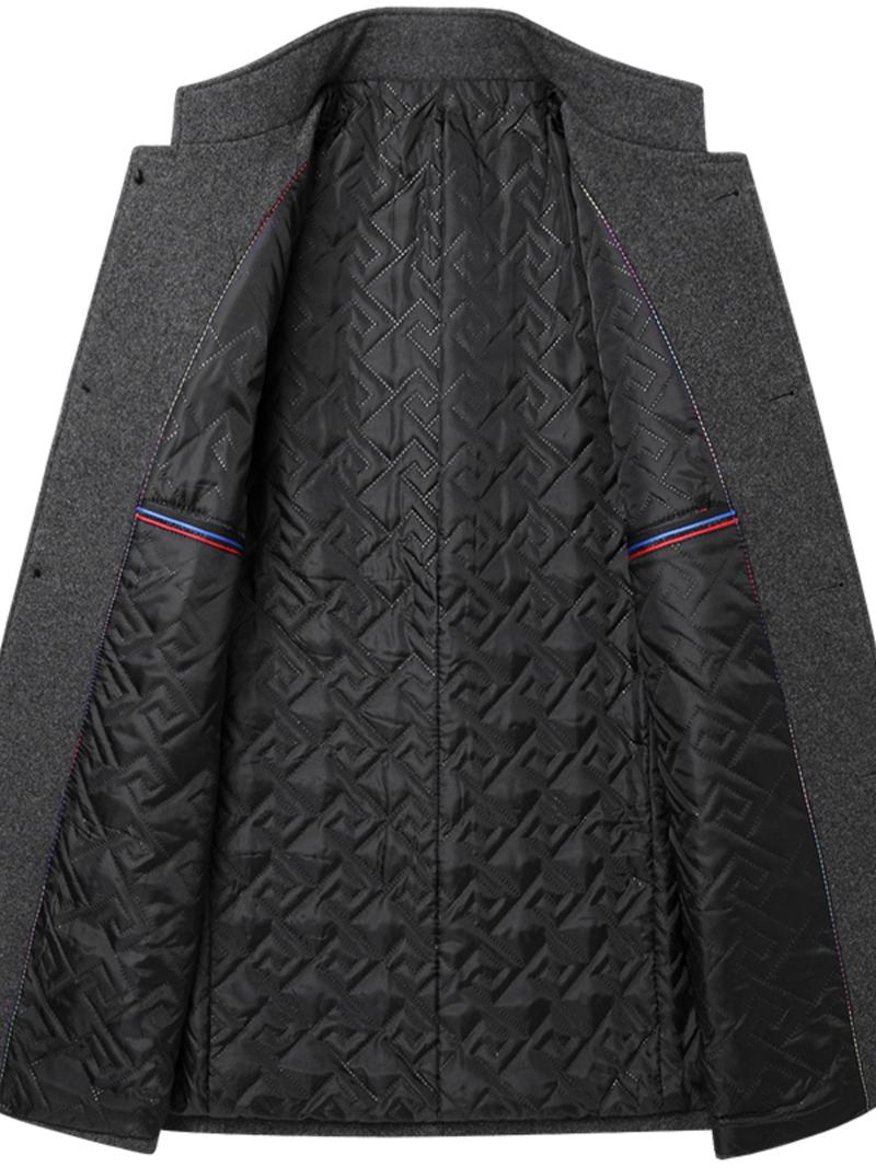 Men'S Solid Color Woolen Coat, Regular Fit Elegant Style Casual Cozy Long Sleeve Button Front Outerwear for Fall & Winter, Men'S Clothes for Daily Wear, Work Office Jacket