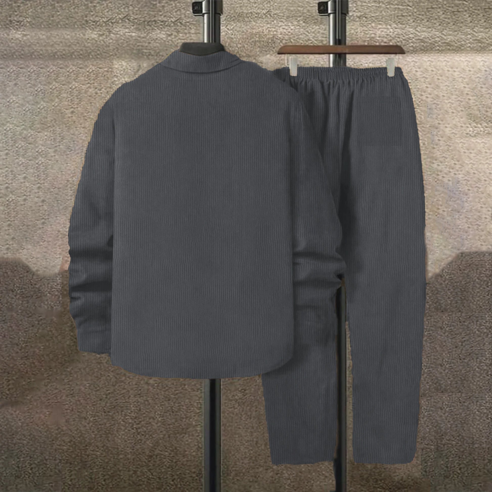 Men's suit Solid color corduroy suit Long sleeve shirt and pants casual suit