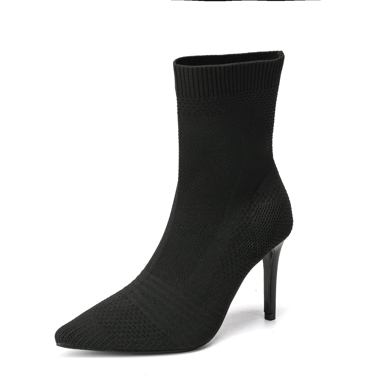 New Style Stiletto High Heel Knitted Women's Boots Elastic Pointed Toe Fashionable Women's Socks Boots 9CM Short Boots