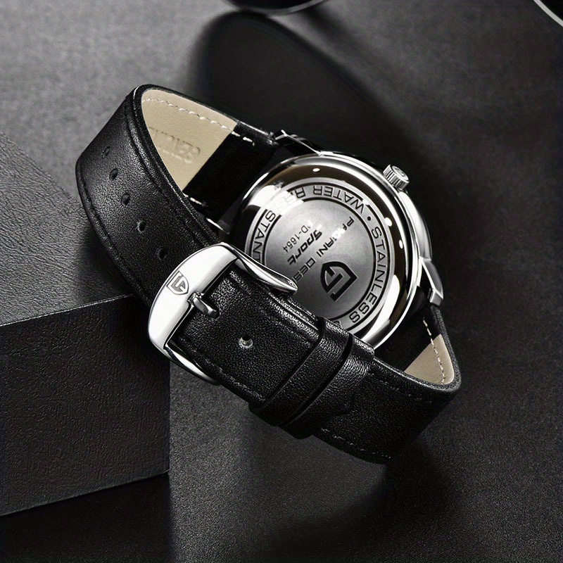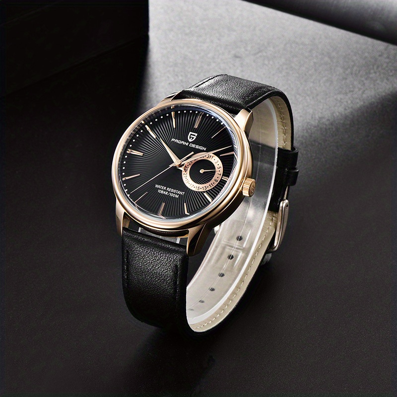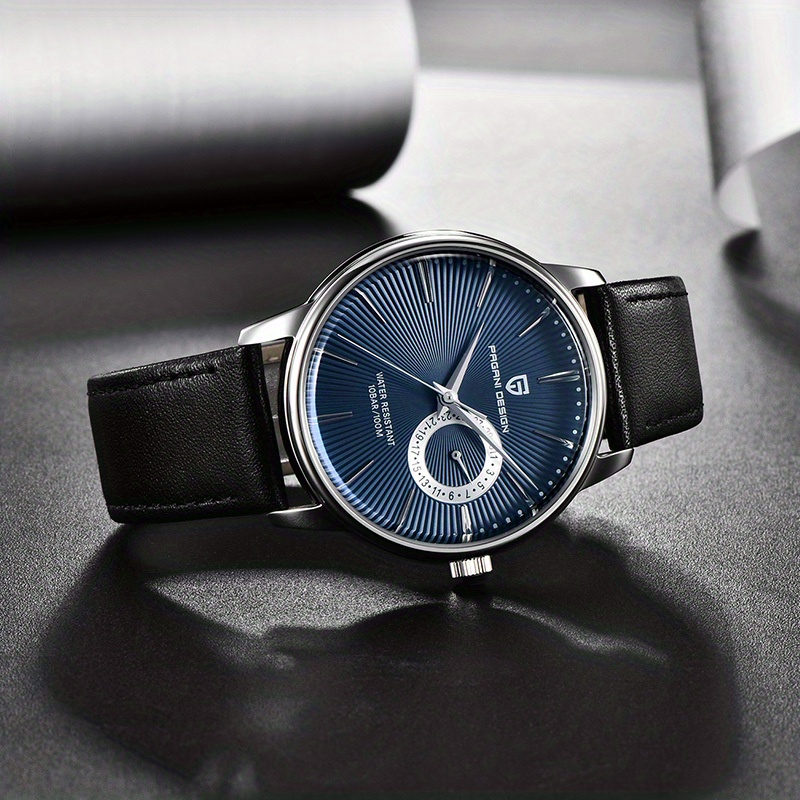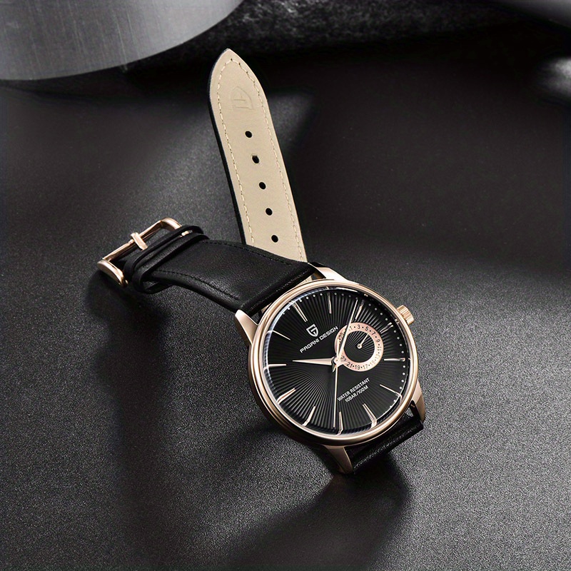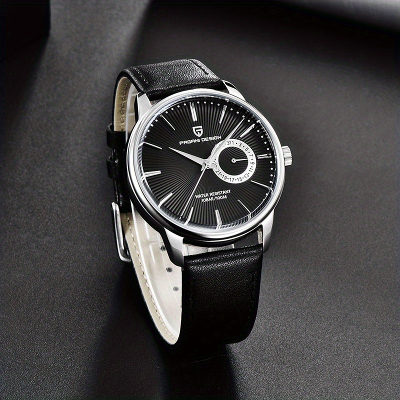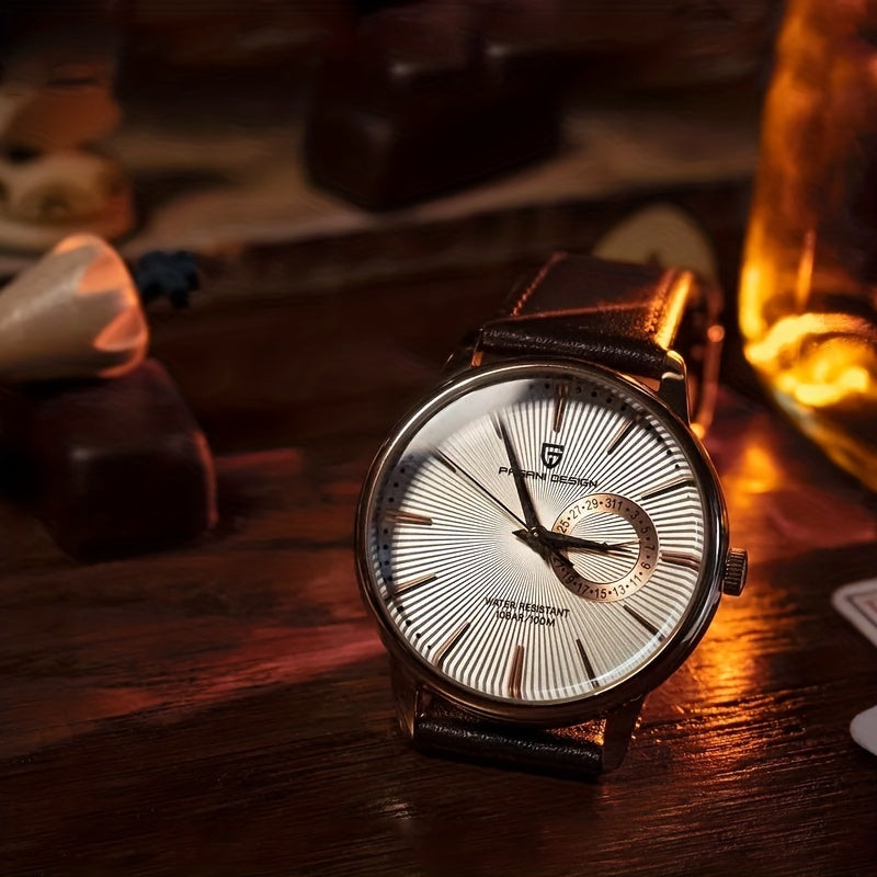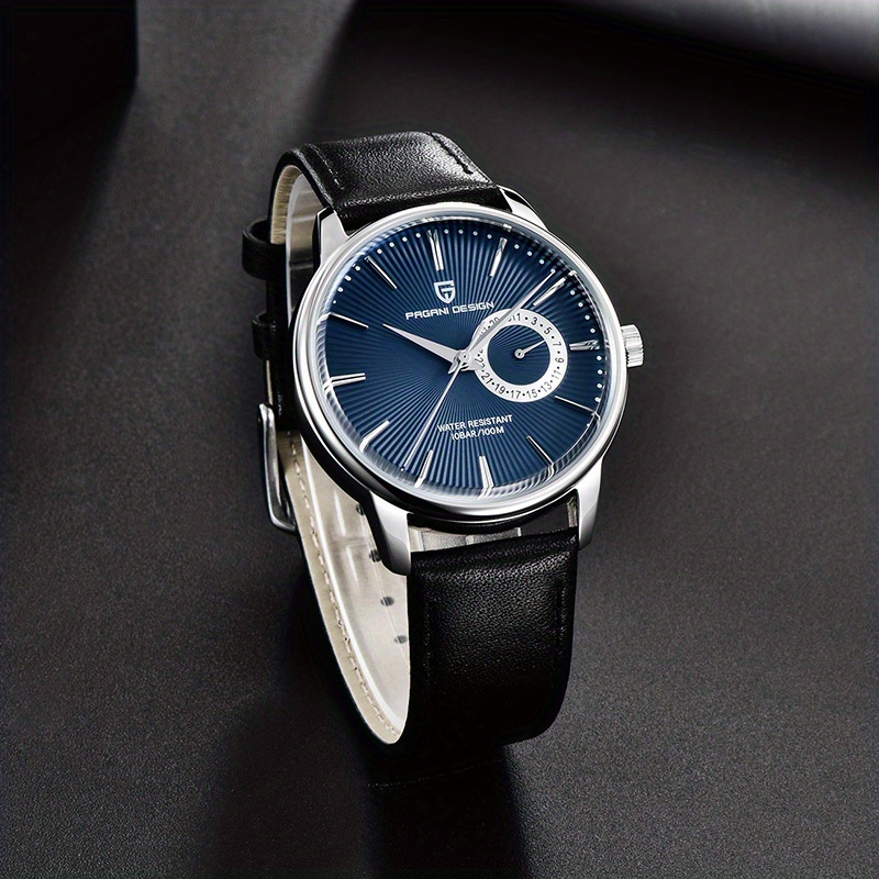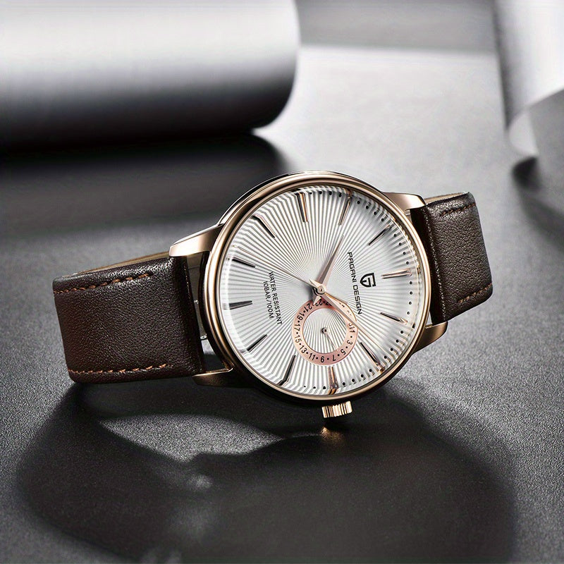 PAGAN DESIGN Fashion Casual Sports Watch Men Stainless Steel Waterproof Quartz Watch Leather Strap