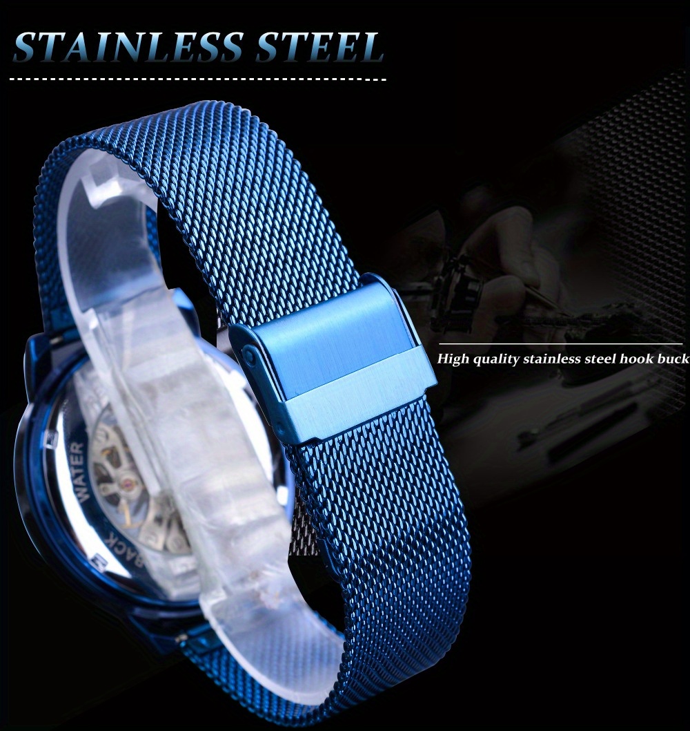 Stainless Steel Automatic Mens Watch - Fashionable Hollow Design, Mesh Strap, Water-resistant for Business & Casual Wear