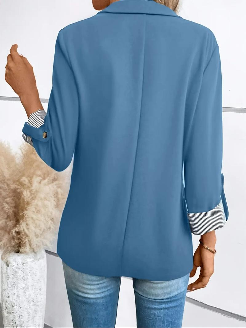 Women'S Solid Color Button Front Roll up Sleeve Blazer Coat, Casual 3/4 Sleeve Lapel Neckline Outerwear for Spring & Fall, Ladies Clothes for Work Office Business