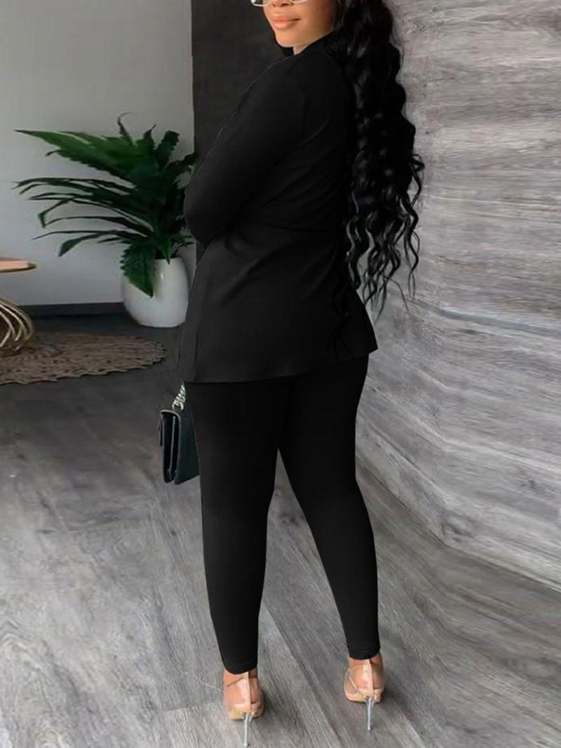 Women'S Solid Two-Piece Set, 2 Counts Tie Front Collared Outerwear & Pants Set, Elegant Fashion Casual Two-Piece Outfits for Work Office Business, Ladies Spring & Fall Clothes