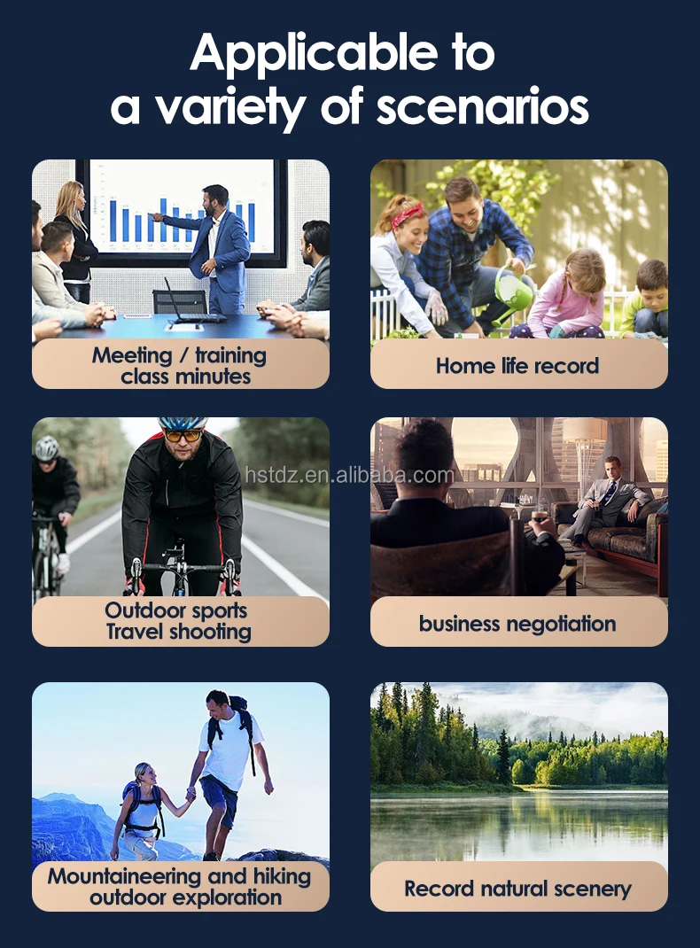 1. Power on/off button: Press for three seconds to power on, the blue LED light will light up, and the power on is complete. Press for three seconds, the blue LED light will turn off to power off. 2. Indicator light: The blue LED light is the working indicator light, and the red LED is the charging indicator light. 3. Charging port: TYPE-C port is the charging port, DC5V-1A, the red indicator light is on when charging, and the green light is on when fully charged. 4. TF card: Supports C10 standard TF card, TF card capacity supports up to 256G TF card recording, the device is equipped with a TF card, and it automatically starts recording video after powering on. |
